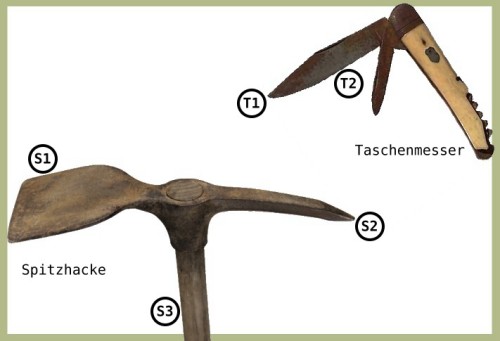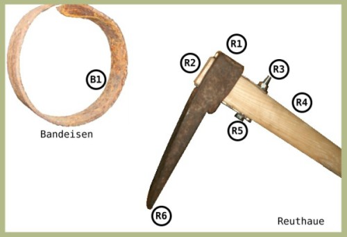 - The Reuthaue; The third, and most likely, weapon to be found during the 1923 demolition. It had a screw protruding from its handle which could be attributed to some of the smaller wounds inflicted on the victims. According to Georg Siegl, a frequent worker at Hinterkaifeck, the reuthaue had been made by Andreas Gruber and that he recognised it because of the bad craftsmanship i.e the screw. The tool was found in the attic space that spanned Andreas and Cazilia’s bedroom. Some reports state that it had actually been hidden in a boarded compartment within the attic’s floor. Human blood and hair was found to be present on it, along with animal hair.